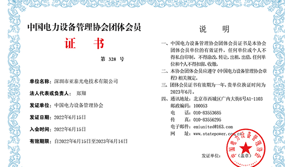 賀:深圳市亞泰光電成為中國電力設(shè)備管理協(xié)會會員單位