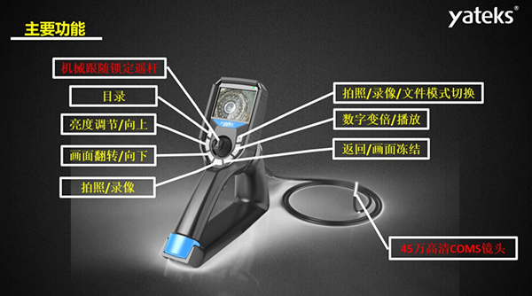 將內窺鏡管線插入一個待檢設備或者空間內,比如發動機中,根據實際情況做360°轉向以檢測損壞或磨損的跡象。長插入管非常適合深入待檢設備或管道系統進行全面檢查,在檢查過程中,技術人員可以拍照或錄制實時視頻以供日后查看。許多內窺鏡也可以記錄聲音,因此視頻可以有畫外音以進行實時檢查分析。