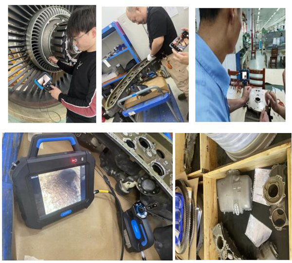 客機維護的工程師為提高巡檢和運維的工作效率,同時檢查出發動機內部結構損傷,提早發現和排查安全隱患,使用工業視頻內窺鏡在大推力航空發動機,渦扇發動機,壓氣機,發動機葉片,空壓機葉片、燃燒室、油路和潤滑部位進行探傷和狀態檢查。針對空間狹小和特殊工件的部位,只能用特定鏡頭進行觀察測量。因為渦輪發動機獨特的內部結構為檢測工作帶來巨大的挑戰,所以要求內窺鏡的結構牢固、性能穩定,有非常強的導向能力、明暗可按需調整的照明、清晰的動/靜態畫質以及良好的操控便攜性。
