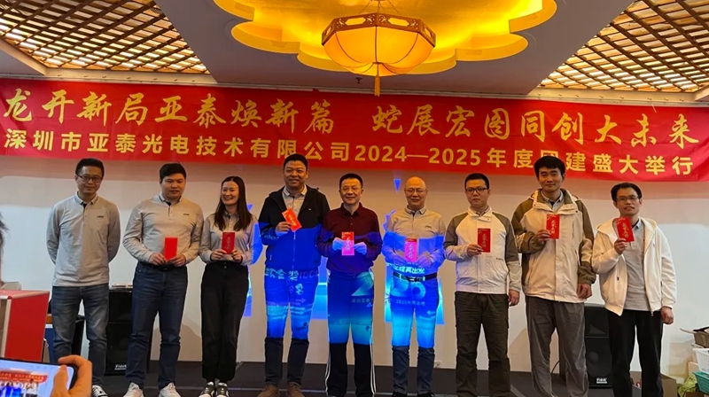 12月13日,深圳亞泰光電迎來了公司2024—2025年度的團建盛典。在這個充滿希望與挑戰的新起點上,全體員工齊聚一堂,以“龍開新局,亞泰煥新篇;蛇展宏圖,同創大未來”為主題,共同開啟了一段難忘的旅程。會場內洋溢著對過去一年成就的自豪和對未來發展的期待,每一個微笑背后都蘊含著對公司未來的堅定信心。