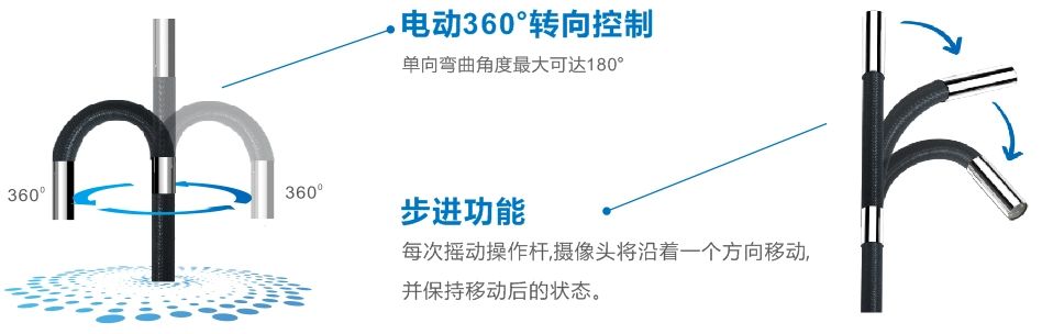l自動鎖定 精準定位——亞泰專利, 步進、快慢速調節和微調鎖定功能以及電動360°轉向控制,最大單向220°彎曲角度。