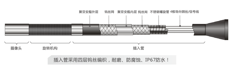 l插入管材質——插入管材質為四層鎢絲編織耐磨管,防水等級IP67,長度可定制。
